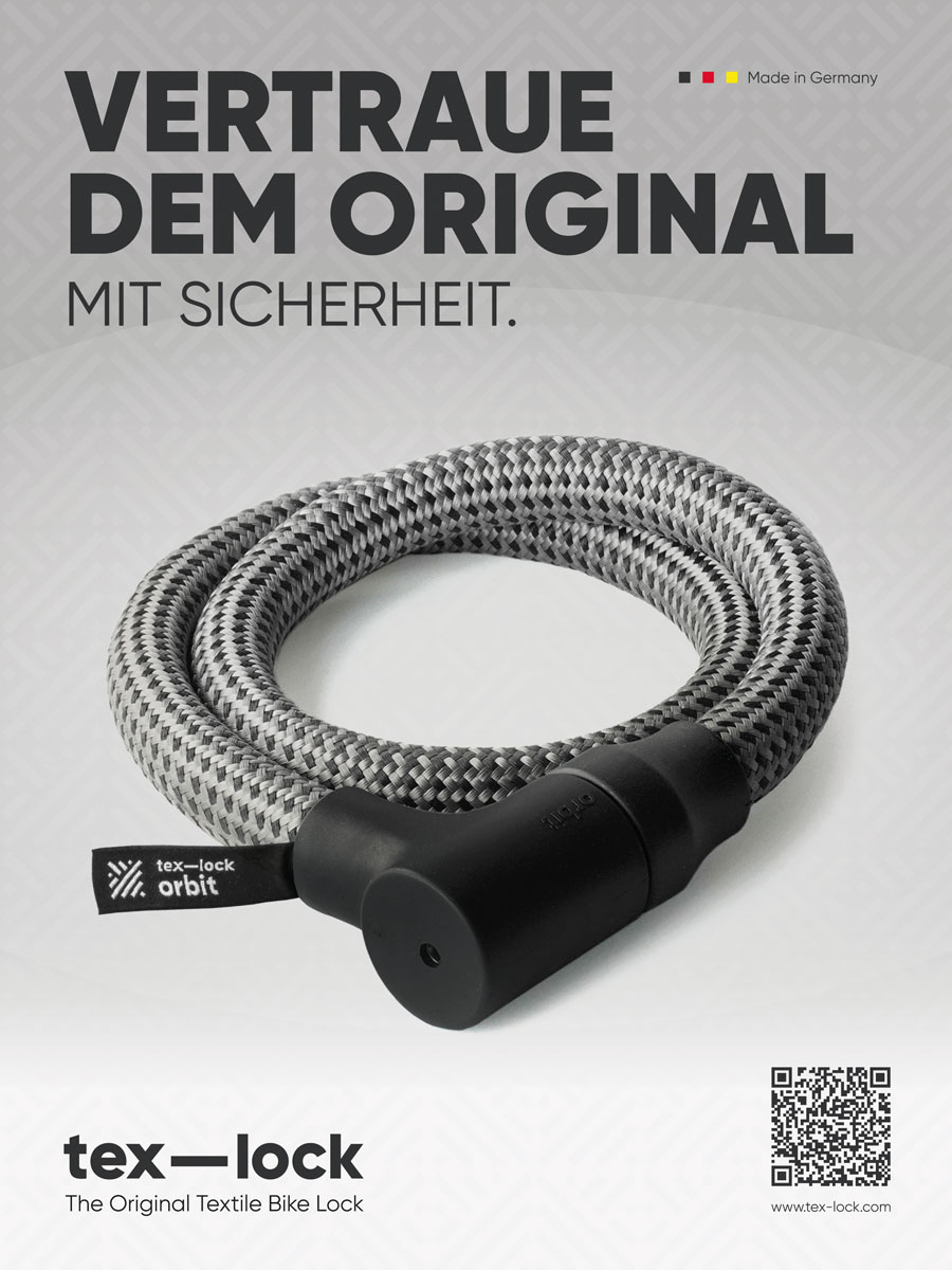 2025 präsentierte ein anderer deutscher Hersteller erstmals ein Schloss, das sich der Kategorie Textilschloss zuordnen lässt. Vermeintlich gleiches Design wird in einer anderen Preiskategorie angeboten. Die Texlock GmbH will dies zum Anlass dafür nehmen, dem Markt eine Orientierung für fundiertere Kaufentscheidungen zu geben. Die Hybrid-Konstruktion von Texlock basiert auf einer patentgeschützten und integrierten Herstellungstechnologie. Textilschlösser von Texlock weisen unabhängige Sicherheitszertifizierungen von ART und Sold Secure auf. Die Texlock-Produkte sind geprägt durch einen ganzheitlichen Anspruch an Form und Funktion. Diese Logik spiegelt sich auch in der Markenhaltung wider, die sich durch eine authentische, zeitgemäße Unternehmensphilosophie auszeichnet – und soll bei vielen Partnerinnen und Partnern sowie der Kundschaft eine besondere emotionale Bindung erzeugen.