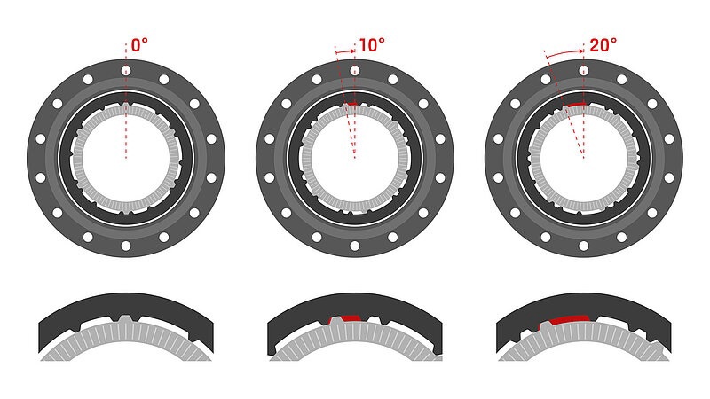 Die „DF-Technologie“ von DT Swiss nutzt die Rotation des Laufrads und den Zug durch den Federdruck auf die Zahnscheiben des „Ratchet DEG“-Freilaufs, um einen von DT Swiss Freiheitsgrad genannten, kontrollierten Leerweg im Freilauf zu erzielen. So kann das Freilaufsystem bis zu einem bestimmten Punkt rotieren, bevor es einrastet. Je nach Einstellung resultiert ein Freiheitsgrad von 0°, 10° oder 20° - für kurzhubige Crosscountry-Bikes, Allmountain-Modelle oder Enduro- und Downhill-Bikes mit richtig viel Federweg. Dabei ist die Einstellung denkbar einfach und kann ohne Werkzeug vorgenommen werden.