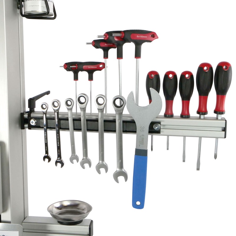 Die Halterung kann werkzeuglos an verschiedene Rahmenformen angepasst werden, was ihre Einsatzmöglichkeiten enorm erweitert. Dank ihrer vielseitigen Anpassungsfähigkeit ist die Cargo plus Clamp ideal für Fahrradwerkstätten, die täglich mit einer Vielzahl verschiedener Fahrradtypen arbeiten.