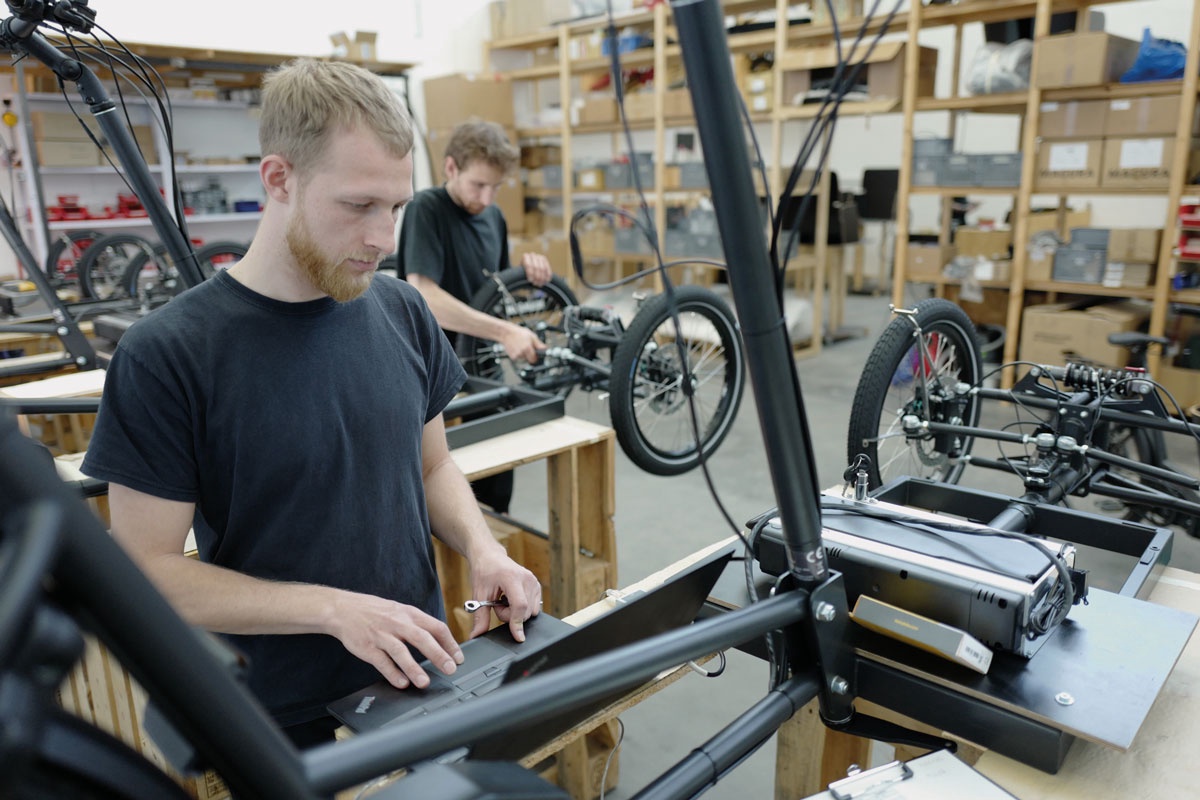Die Produktion der High-End-Lastenräder erfolgt in Ostfildern und ist möglichst regional aufgestellt.