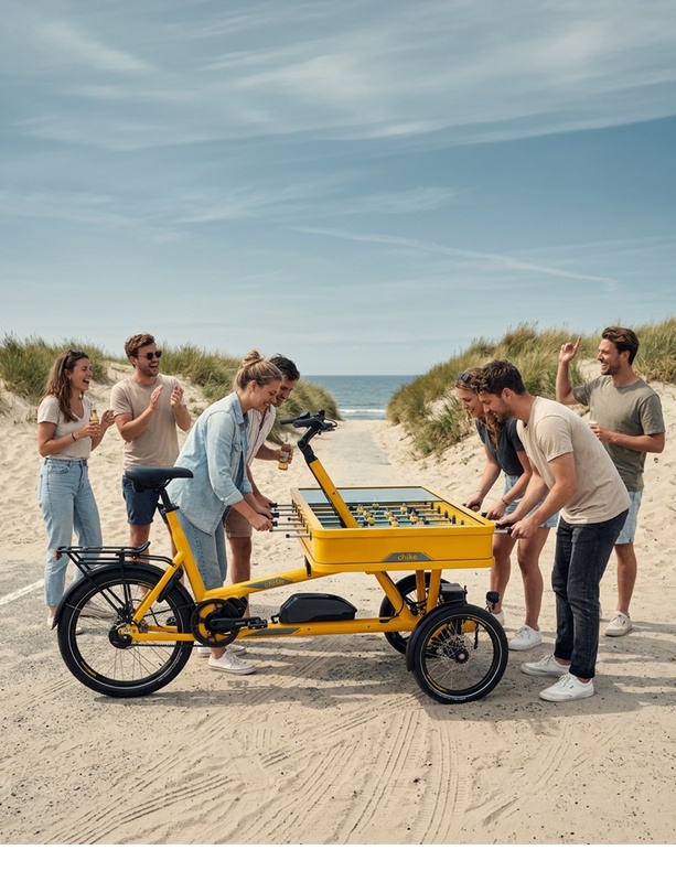 Die Lastenradmarke Chike aus dem Hause Hartje ist durch ihre Vielseitigkeit bekannt. Zum 1. April hat man in Hoya noch einen draufgesetzt – passend zum Frühlingsanfang: Mit Sondermodellen und Aufbauten zum komfortablen Grillen oder wahlweise als Tischkicker. Und damit nicht genug: Um das Grillgut zu transportieren, empfiehlt Chike erstmal eine abschließbare Transportbox. Manuel Prager, Geschäftsführer von Chike blickt nach vorne: „Wir müssen mal schauen, wie oft wir das E-BBQ so nutzen. Vielleicht könnten wir dann auch endlich mal eine weitere Idee angehen – das E-Freezer, also quasi mit einer Kühltruhe als Box, das lohnt sich dann richtig“.