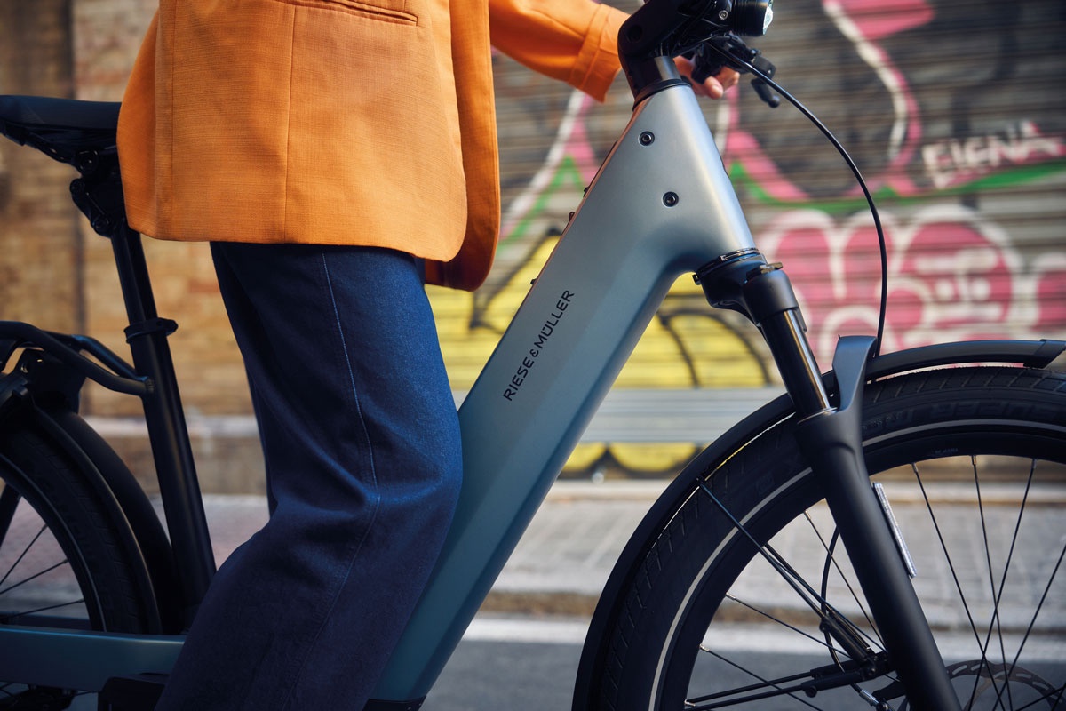 Das Ergebnis ist ein Premium-E-Bike, das anspruchsvollen Fahrerinnen und Fahrern höchsten Komfort bei kompromisslos sportlichen Fahreigenschaften bietet. Der Rahmen übernimmt charakteristische Designelemente früherer Nevo-Generationen und interpretiert sie neu. Dazu gehören eine zweifarbige Lackierung, verschliffene Schweißnähte im Sichtbereich und ein in Rahmenfarbe lackiertes Akkucover aus Aluminium. Vier Rahmenfarben und vier Größen decken eine Körpergröße von 1,55 bis 2,10 Meter ab.