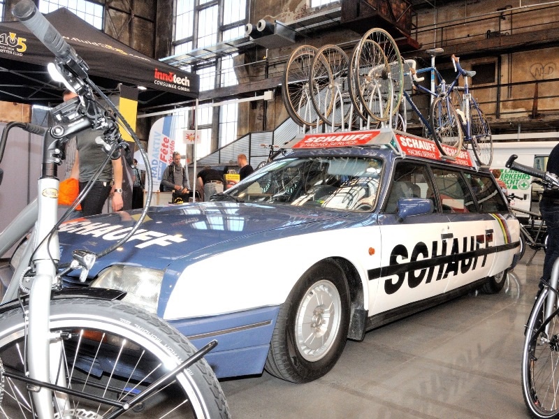Exotisch wirkte auf der Cycling World auch der Stand des Traditionsherstellers Schauff. Mit einem Begleitfahrzeug-Oldtimer von Citroen passte der Auftritt bestens zum Retro-Charme der Halle. Jan Schauff gab sich zufrieden mit der Messe: Er lobte ein interessiertes Publikum und – von den späten Nachmittagsstunden am Sonntag abgesehen – den durchaus starken Besucherstrom.