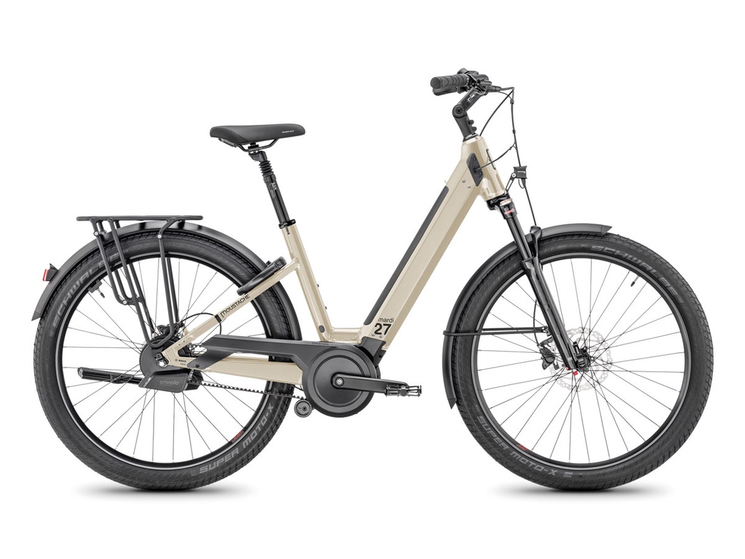 Mit dem Mardi 27 erweitert Moustache das Sortiment um eine neue Komfortklasse für den Einsatz in der Stadt. Dafür kommt das Mardi 27 mit komfortablem Tiefeinstieg, wahlweise Federgabel oder Vollfederung, Nabenschaltung sowie praktischen Ausstattungsoptionen, etwa einem Frontgepäckträger. Dank neuer Rahmenplattform haben die Nutzerinnen und Nutzer die Wahl zwischen verschiedenen Bosch-Motor-Varianten – Performance Line, PX oder CX. Preislich bewegt sich das Mardi 27 zwischen 3399 Euro (Modell 27.2 Open) und 5599 Euro (Modell 27.6 FS).