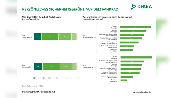 Für die Online-Studie befragte Ipsos im Auftrag von DEKRA im September 2025 insgesamt 1.000 Fahrradbesitzerinnen und -besitzer. Weitere Informationen und die gesamte Studie gibt es unter: www.dekra.de/fahrradstudie .