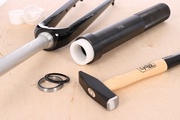 Der Universal-Aufschläger sorgt für exaktes Aufschlagen auf die Gabelkrone. Adapterhülsen mit Fase schützen die Dichtlippen, die integrierte Führung ermöglicht präzise Zentrierung, ein Verkanten wird so verhindert. Insgesamt vier Größen stehen zur Auswahl, sie sind geeignet für Gabelschaftlängen bis 340 mm, abhängig vom Gabelschaftdurchmesser.