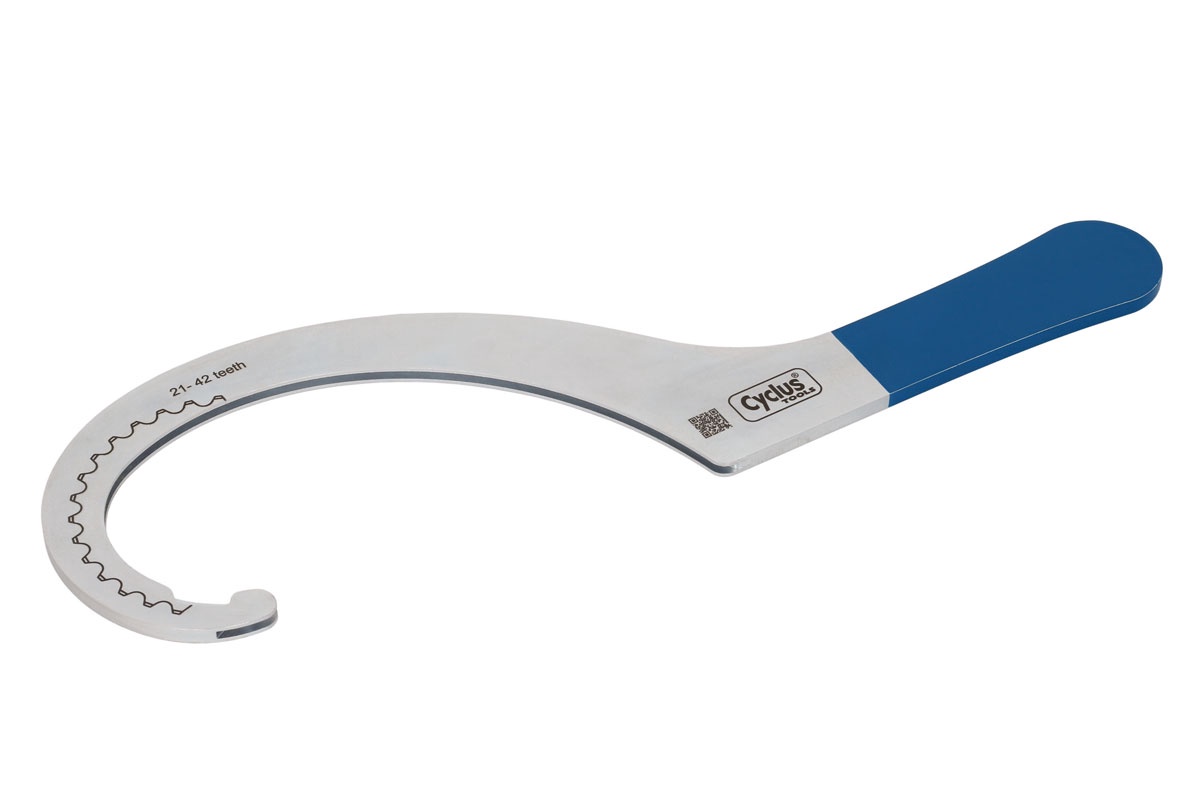 Die Kettenpeitsche 2.0 ermöglicht das sichere Gegenhalten bei der Demontage von Kassetten und Freilauf-Ritzel mit 21–42 Zähnen. Die kettenlose Konstruktion verhindert ein Abrutschen und erlaubt hohe Drehmomente. Sie ist auch für Campagnolos Ekar-Kassetten geeignet. Gefertigt ist der Zahnkranzschlüssel aus CrV-Stahl mit gummiertem Griff.